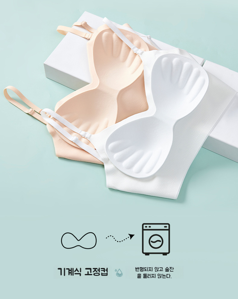 올인원 헴팬티와 컵 브라 일체형, 노와이어로 편안함 제공, 볼륨 업 효과, U넥과 백 브라 디자인, 데일리 이너웨어로 적합
